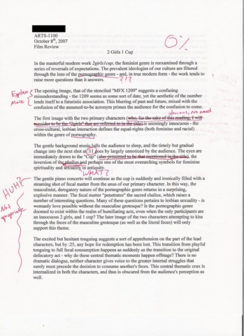 I am not sure if you know the phenomenon, but there is a nasty nasty video out there in Internet Land called 2girls1cup. I really don't want to get into details about what it is, but you can find a detailed description further down in this posting.