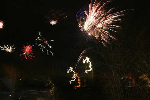 After our champagne and popping our fireworks inside the living room, I stepped outside to check out the lights.
