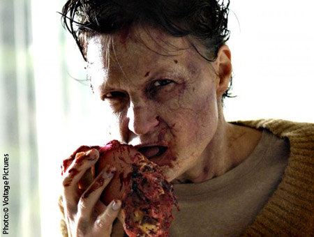 There’s also a series of gleefully revolting, prosthetically created (by Gaslight Studios), CGI-goosed, blood-spattered money shots and some surprisingly broad laugh-out-loud humor. Watch out for the deaf-mute Amish farmer who scribbles on slates and gets very creative with a scythe. The performances by Shawn Roberts (who also appeared in LAND OF THE DEAD), Amy Lalonde and Michelle Morgan are effectively organic, and the film possesses a general low-tech eeriness, coupled with an aching sense of loss that sucks you in and keeps you glued to the screen.